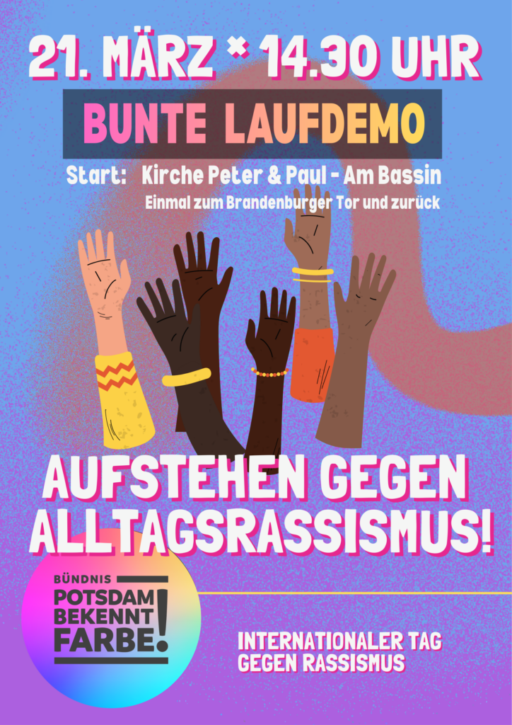 Im Rahmen der Internationalen Woche gegen Rassismus rufen wir für Samstag, 21.03.2026, 14.30 – 17.00 Uhr, zu einer gemeinsamen Aktion in der Brandenburger Straße auf.